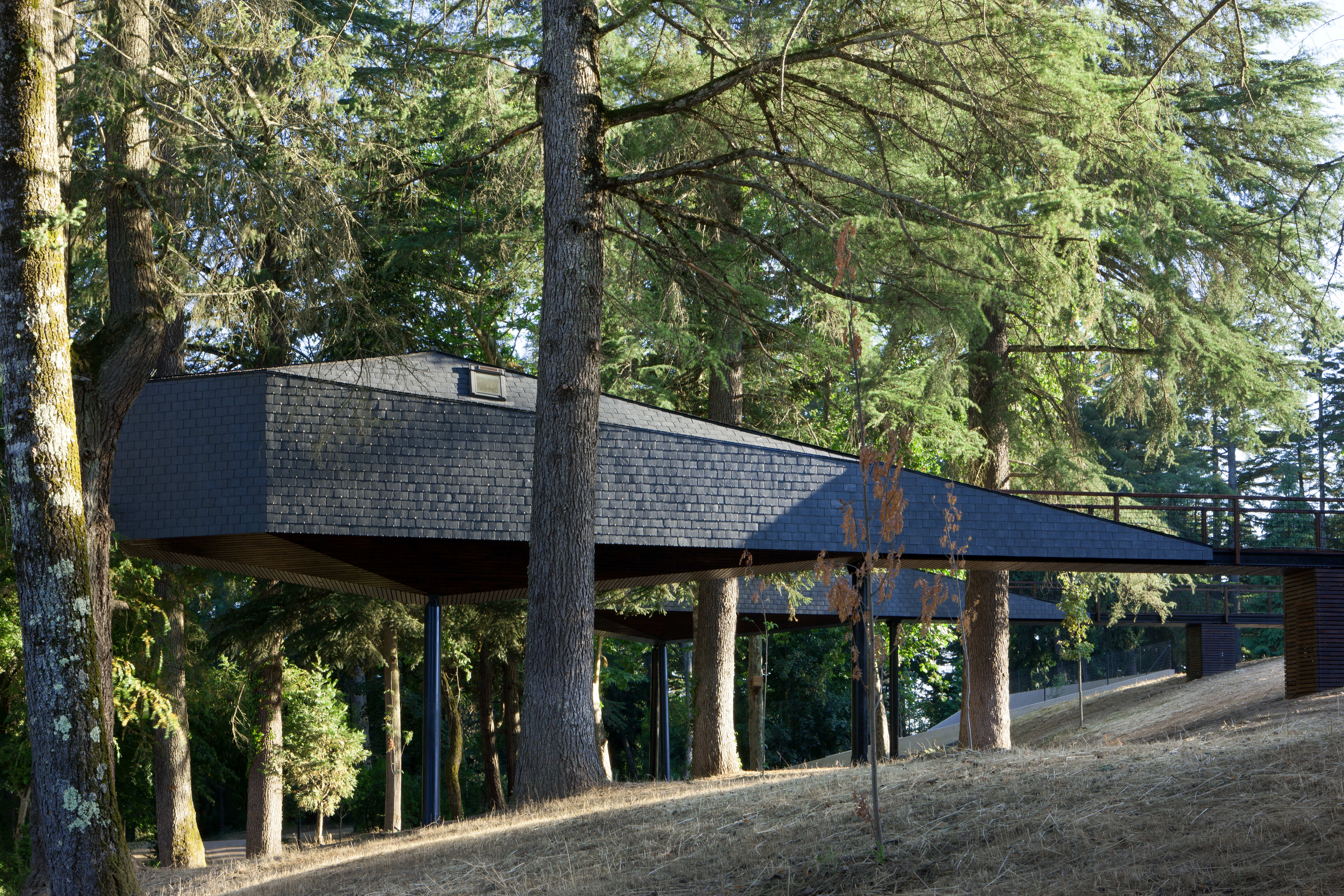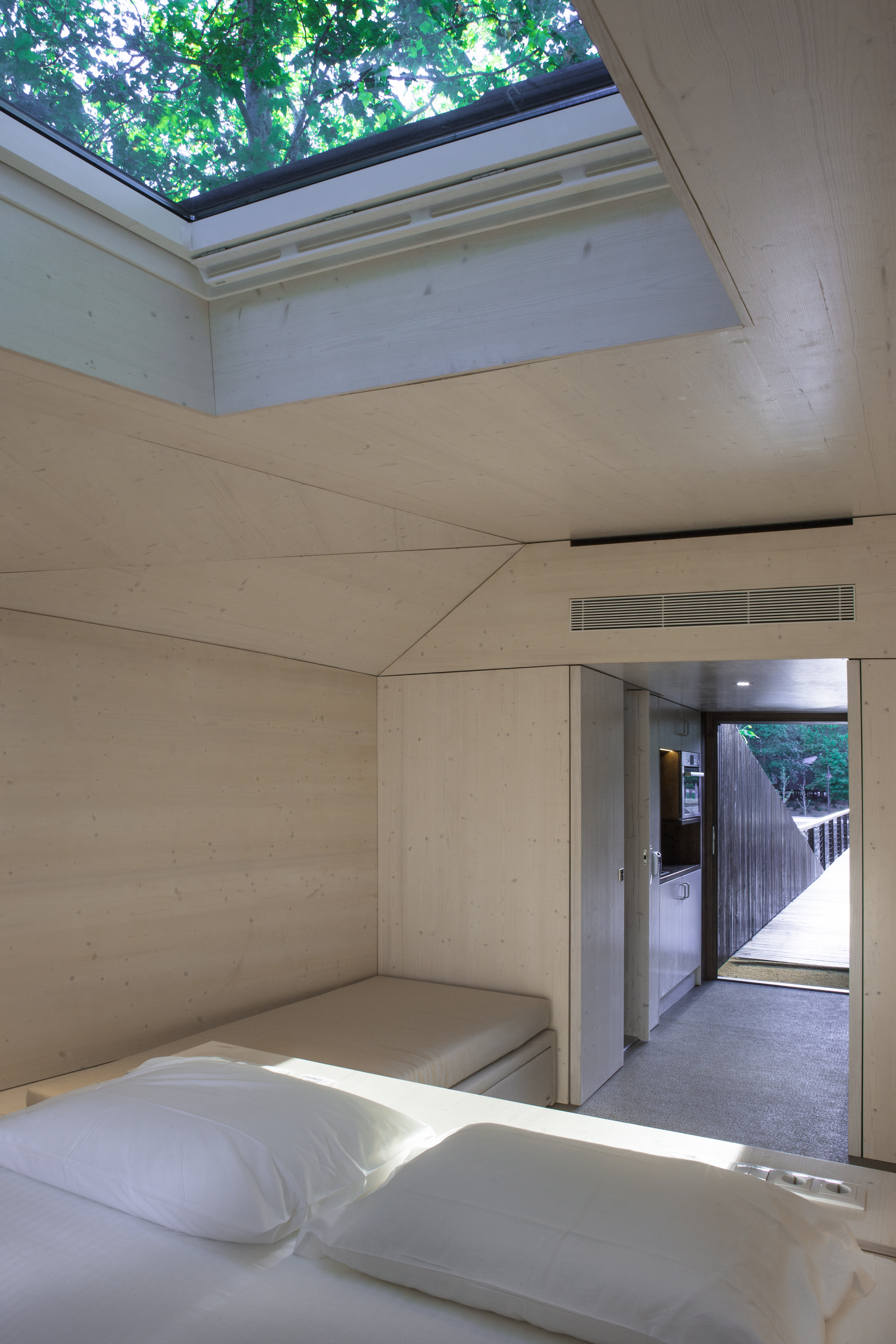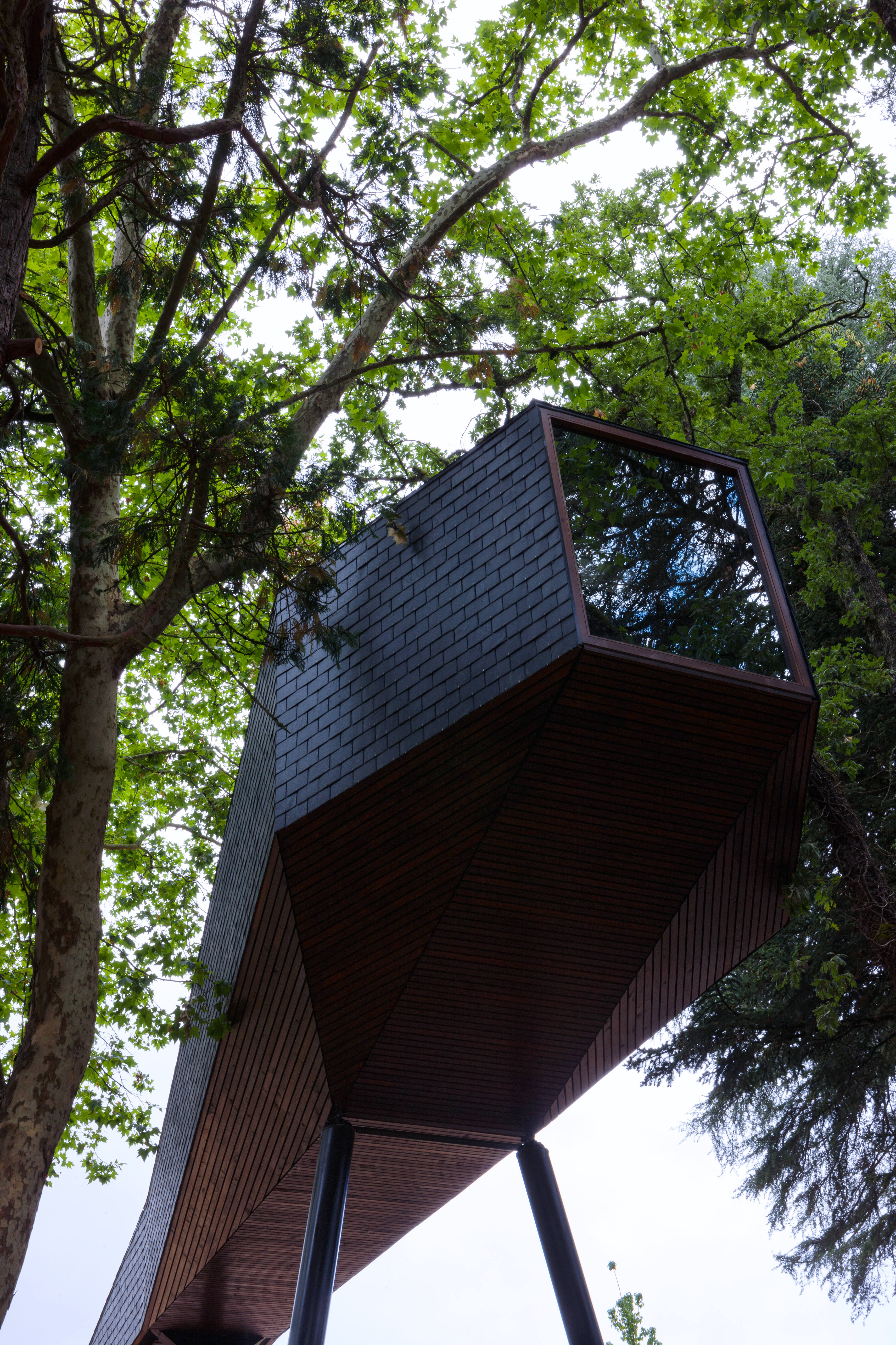 There are 2 tree houses with two windows, one through which the life of the park may be observed, and another to look at the stars.