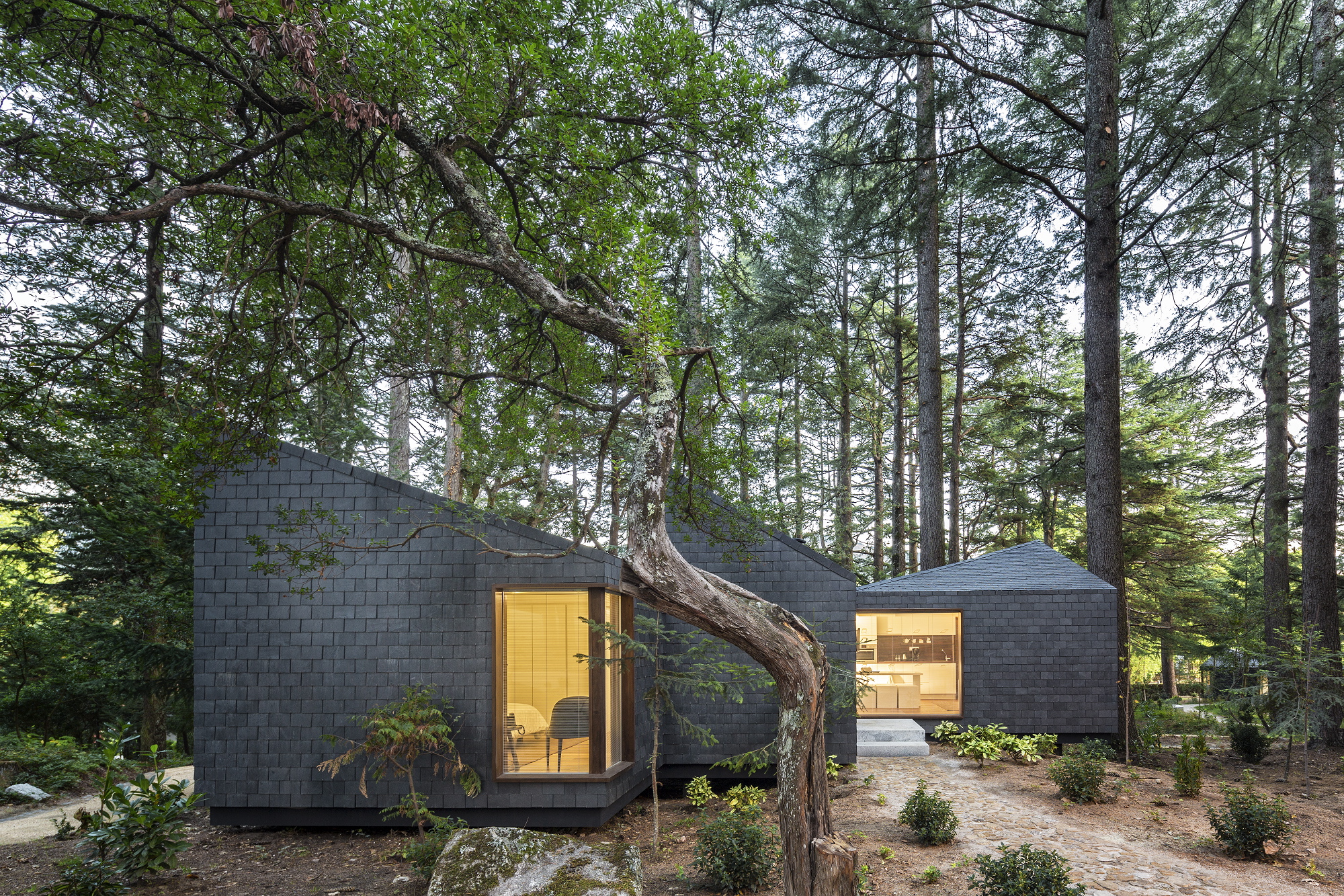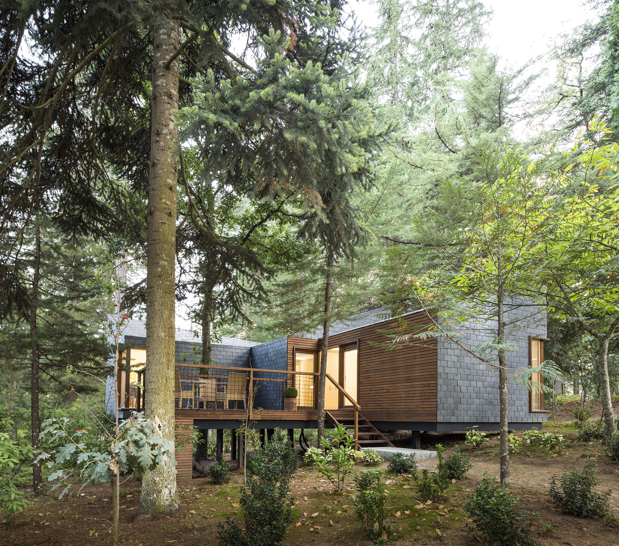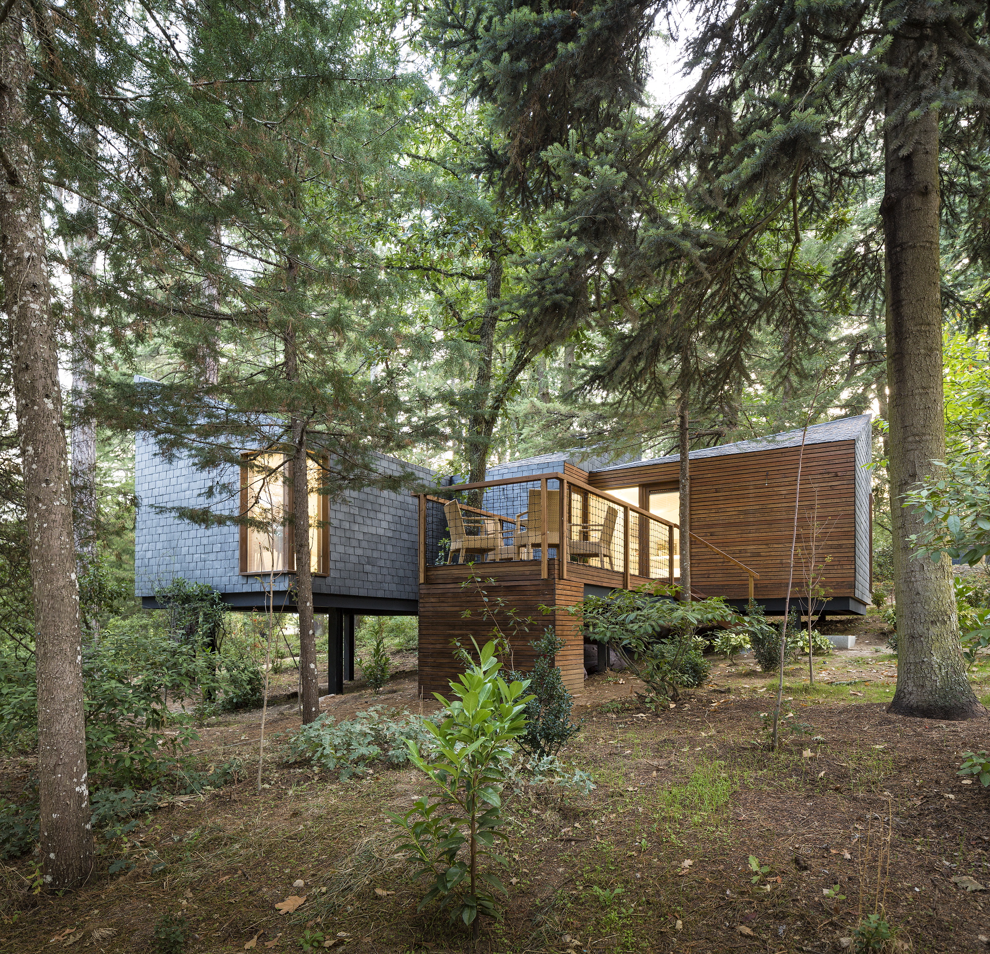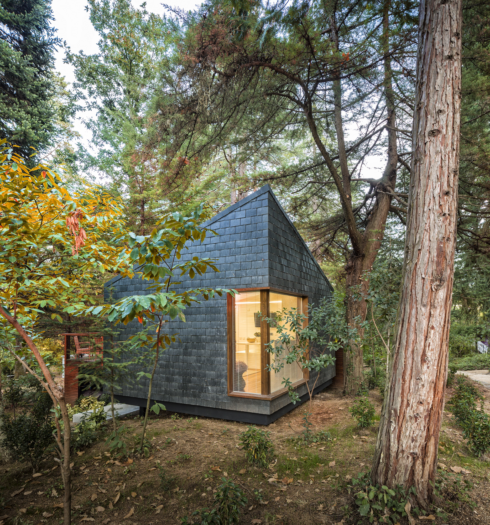 There are 2 tree houses with two windows, one through which the life of the park may be observed, and another to look at the stars.