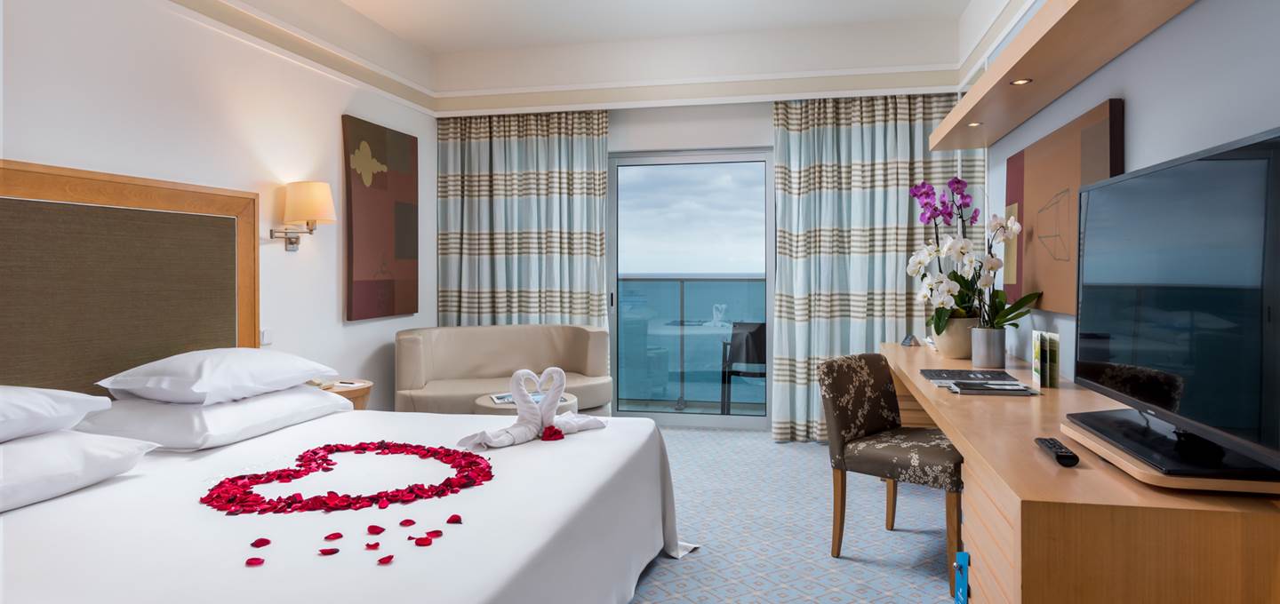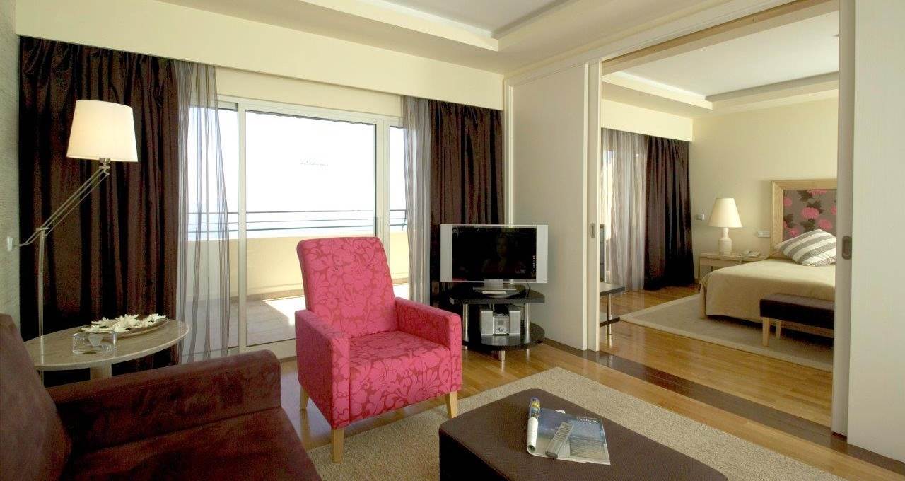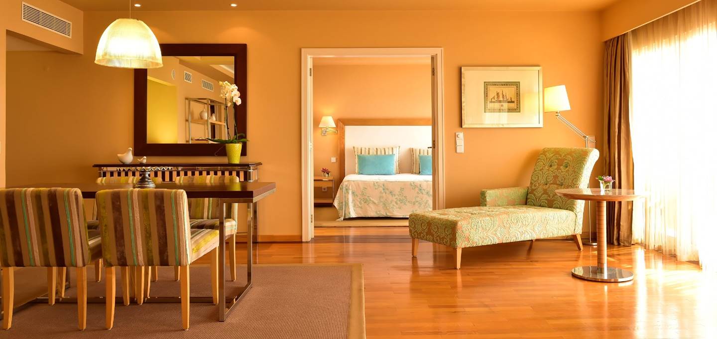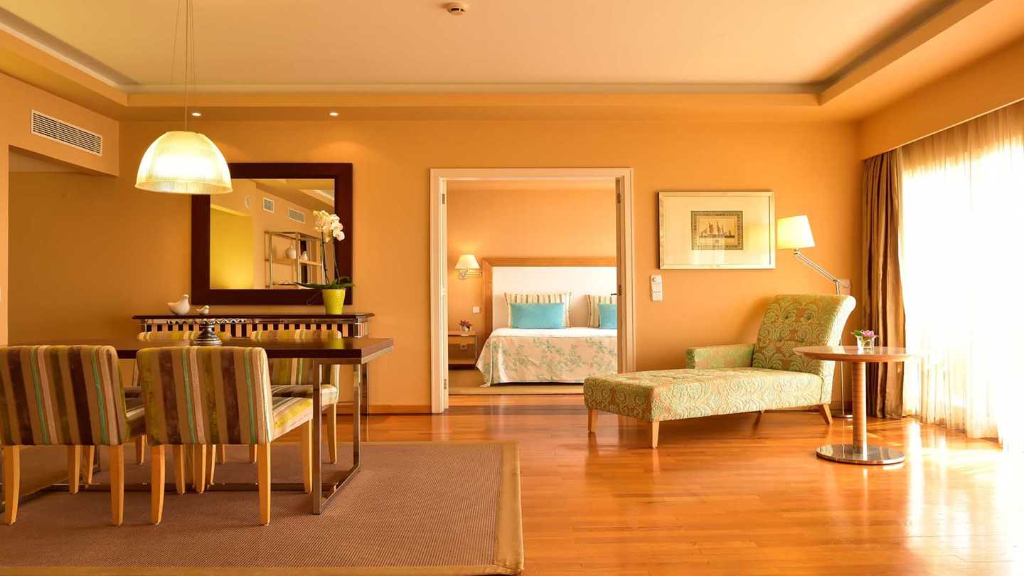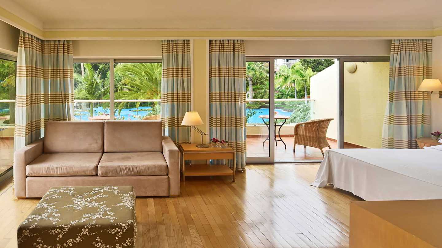 Rooms with a king size bed and a separate seating area with a sofa and armchair. These fantastic suites are located between the 1st and 4th floor and offer garden, swimming pool or sea views. Some feature a balcony with a table and chairs. Maximum capacity: 4 adults. Area: 62m²