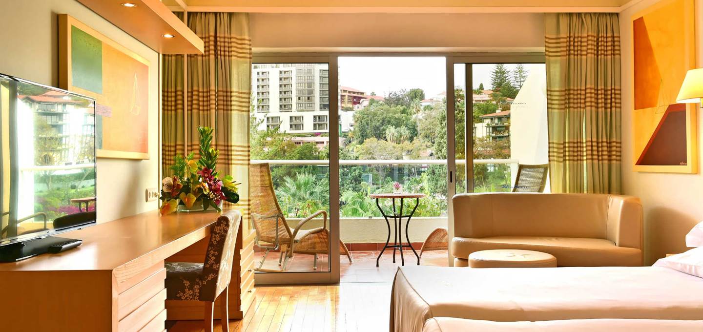 This room has a balcony with a table and chairs and views of the bay of Funchal or the ocean. It features a double bed or two single beds. Maximum capacity: 2 adults. Area: 30m²