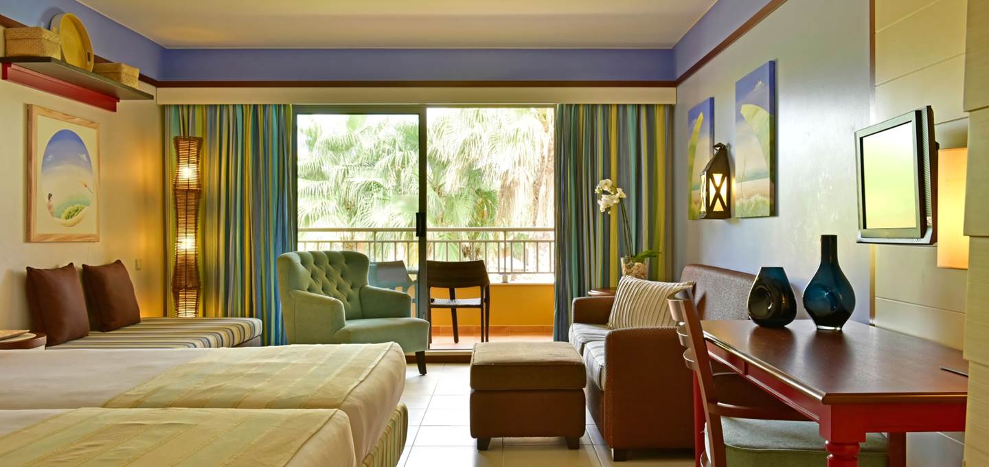 This room type offers a garden view with king or twin beds. Maximum occupancy: 2 adults + a cot. For families who need more space, the connecting rooms are available (one double and one twin separated by a connecting door). Area: 26m²