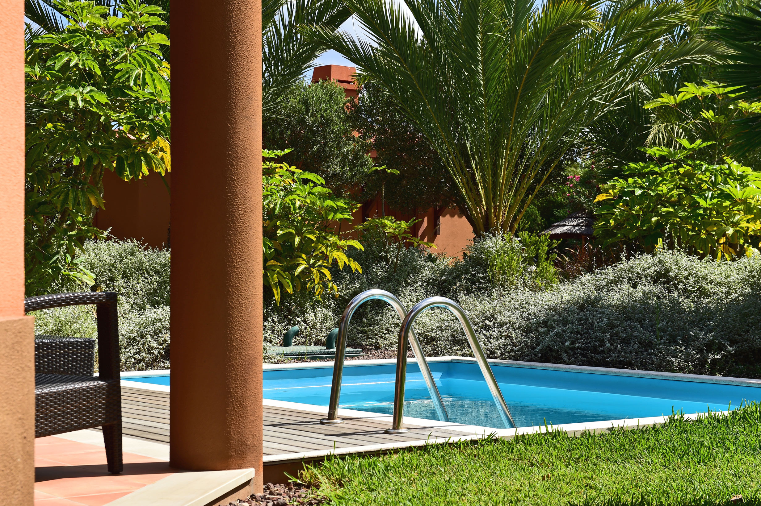 A king or twin bed with views to the pool. The room accommodates a maximum of 2 adults + a cot. Area: 31m²