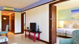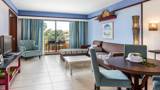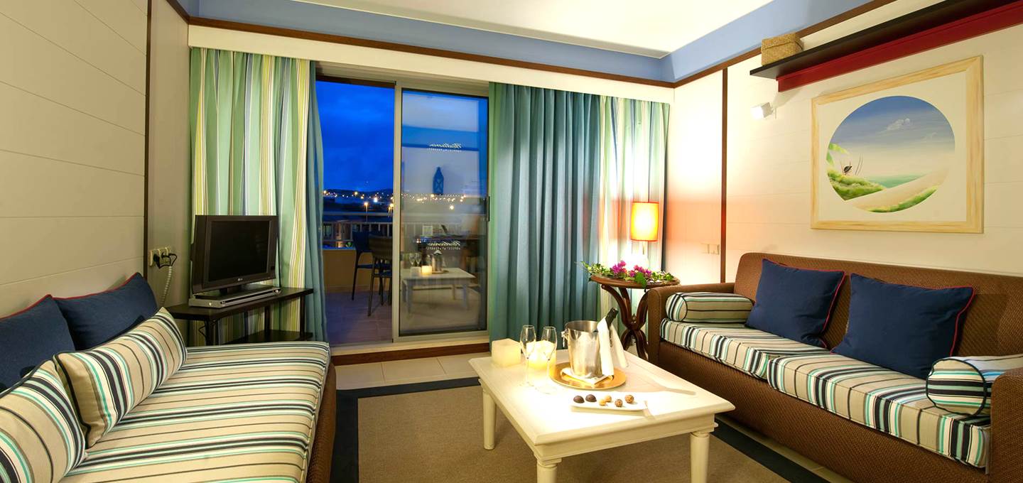 The suite has a bedroom with a king bed and a separate living area. The lounge is spacious and comfortable, includes a sofa, table and chairs. It can accommodate up to two adults and two children. Area: 41m²