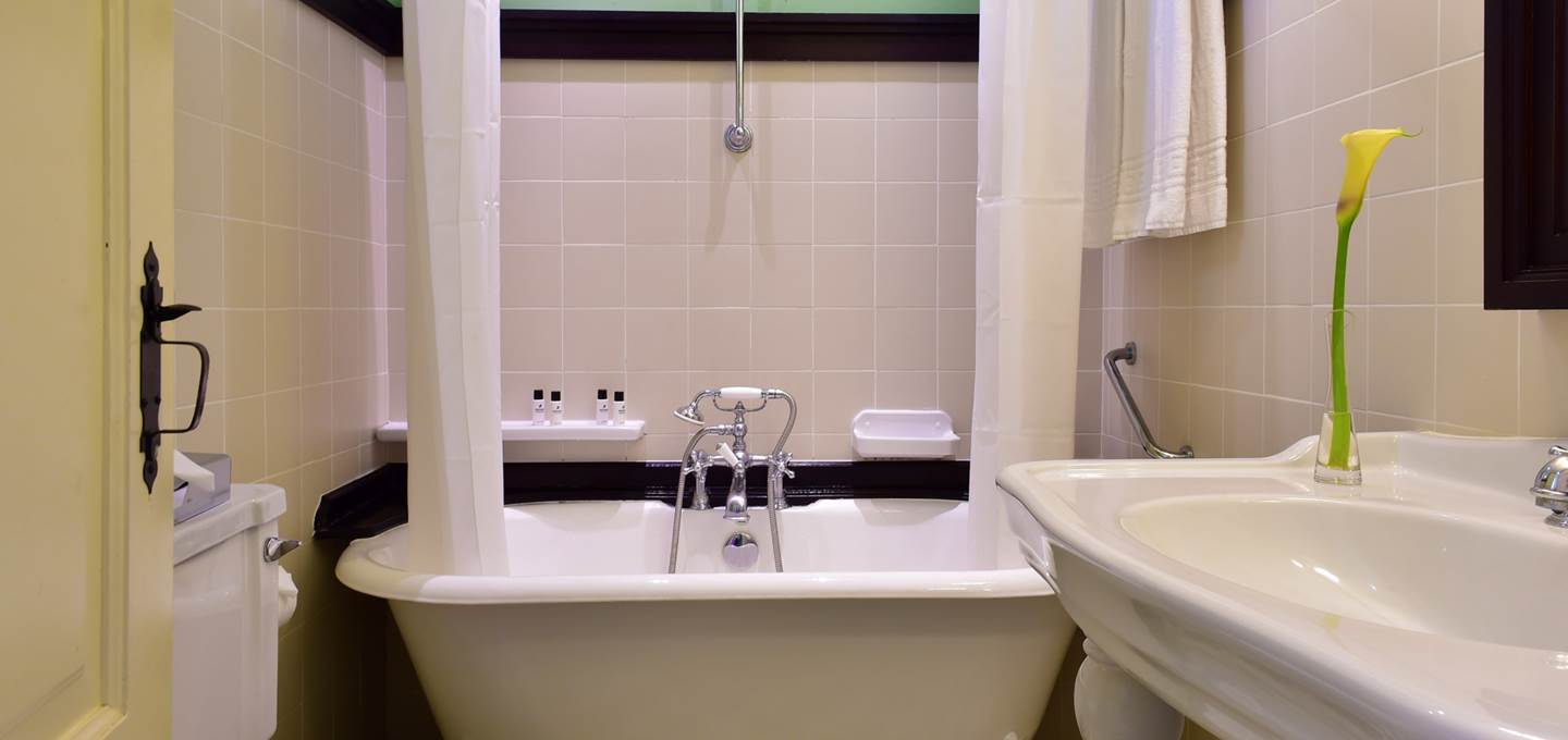 Room with 1 double bed or 2 single beds with temple, interior or cloister views. Bathroom has a Victorian bath with a shower. Area 30m². Max Capacity: 3