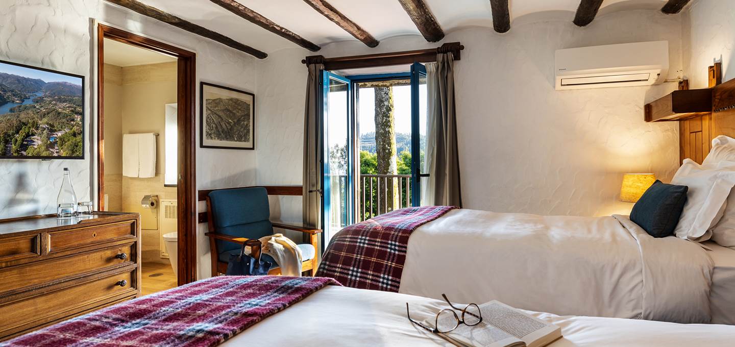 Room with a view over the dam and a double bed or 2 single beds. Bathrooms equipped with a bath. Area: 25m². Max Capacity: 2