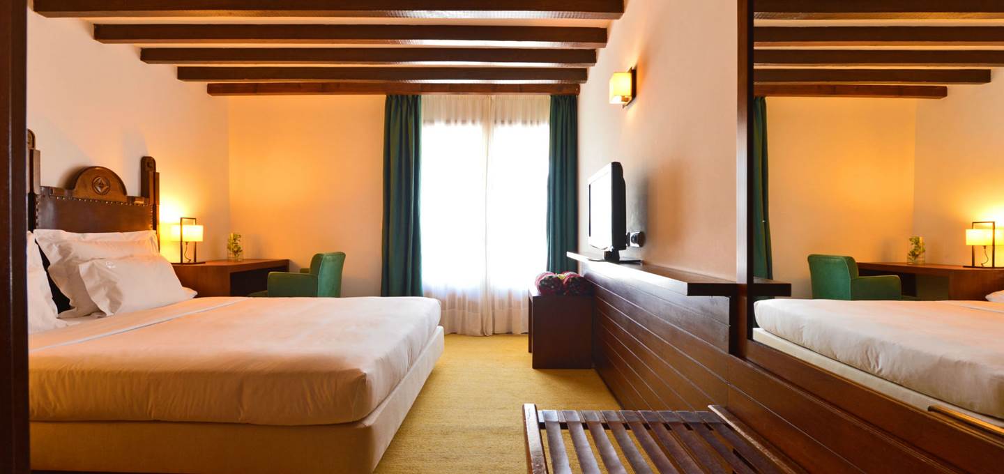 Room with a view over the dam and a double bed or 2 single beds. Bathrooms equipped with a bath. Area: 25m. Max Capacity: 3