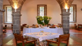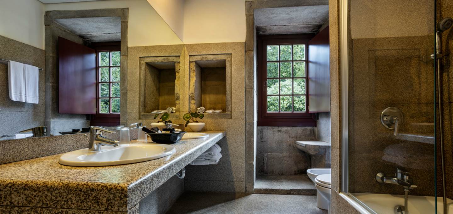 The on-site restaurant serves a menu of traditional Portuguese cuisine, with a focus on regional dishes from the Minho area, often paired with local wines.