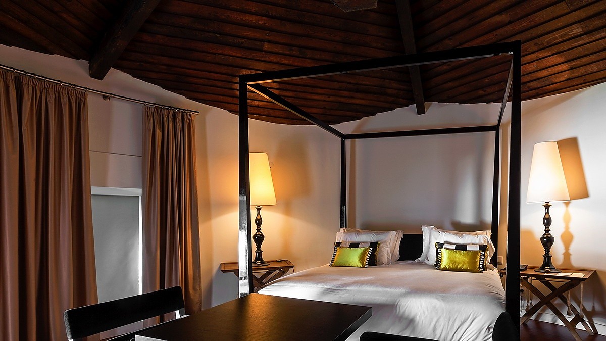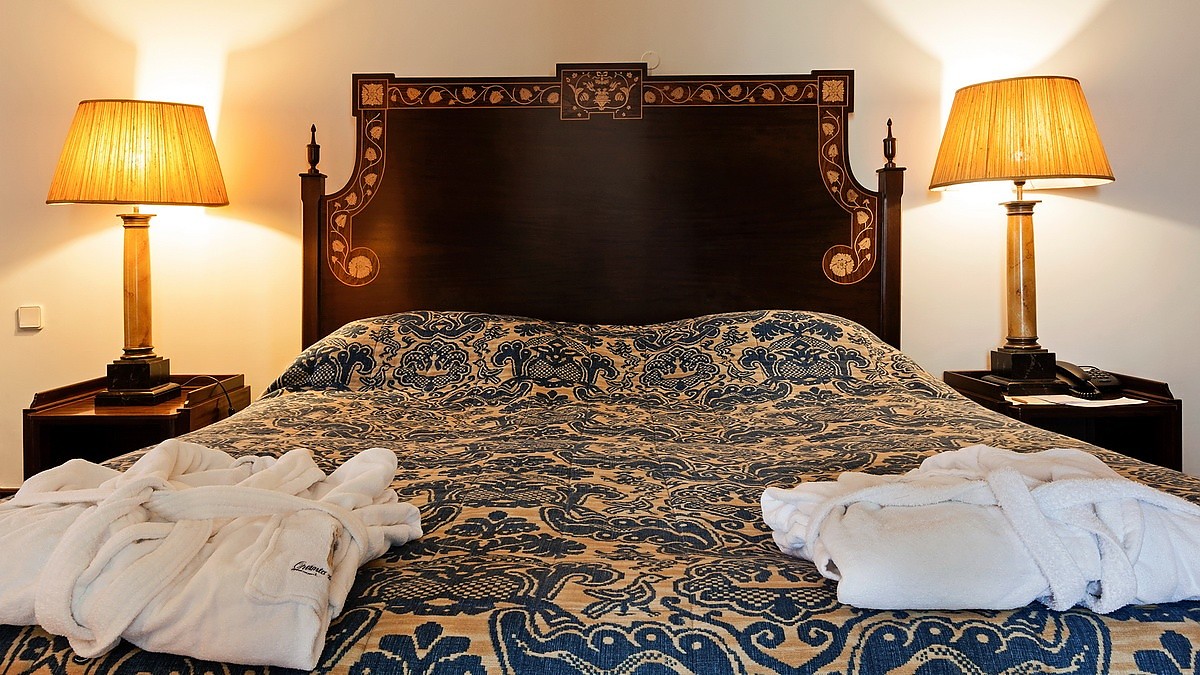 Located in the spa wing, this room is equipped with a double bed and a balcony with views of Coimbra or the Botanical Gardens. The room has direct access to the spa area which includes an indoor pool, massage rooms and a fitness area. Maximum capacity: 2 adults and 1 child up to 12 years or a 3rd adult in extra bed. Area: Approx. 27m²