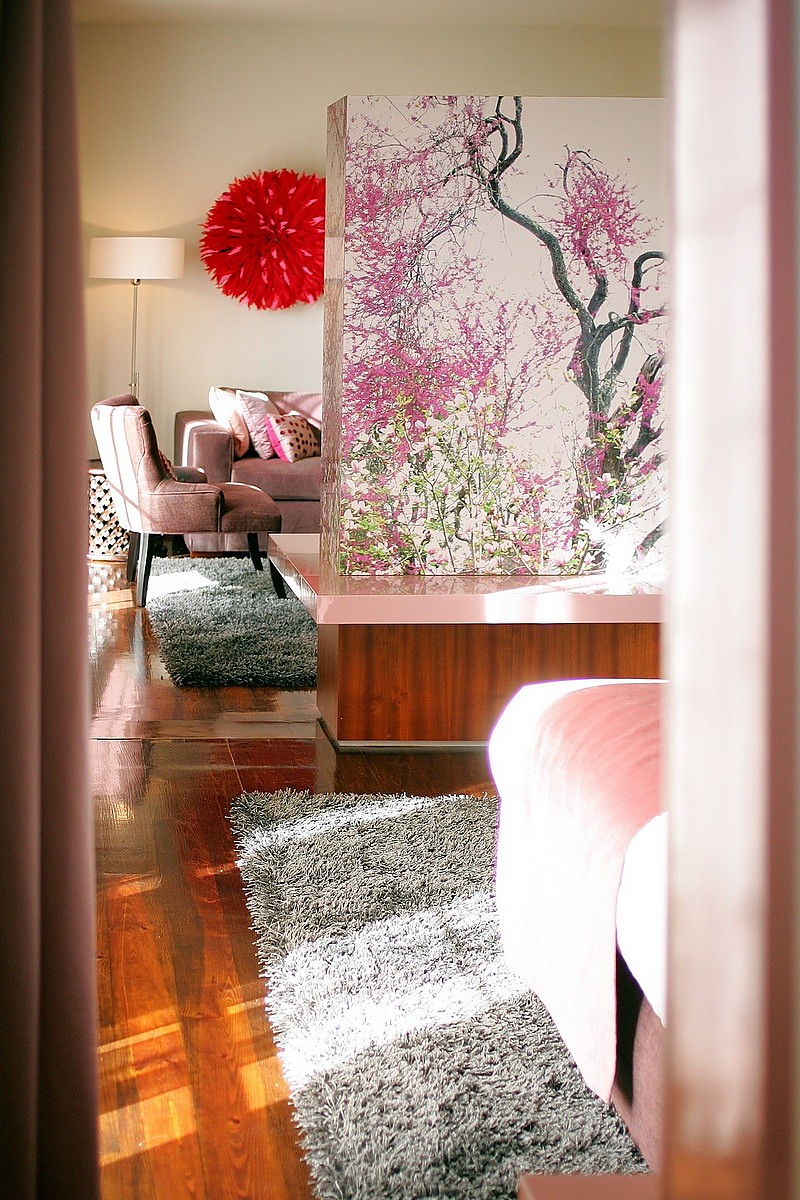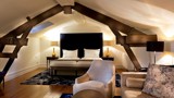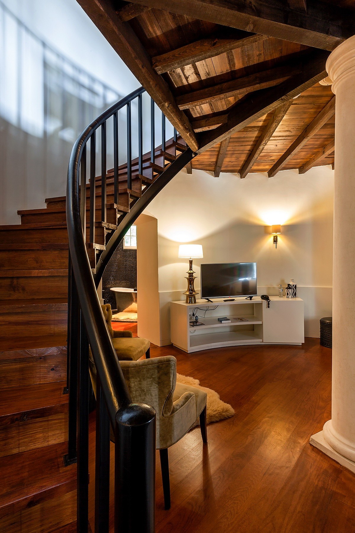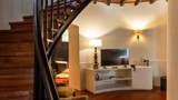 This suite with a double bed, is divided into 2 floors (living room and bathroom on the lower floor and bedroom on the upper floor). Maximum capacity: 2 adults and 1 child up to 12 years or a 3rd adult in extra bed. Area: Approx. 40m²