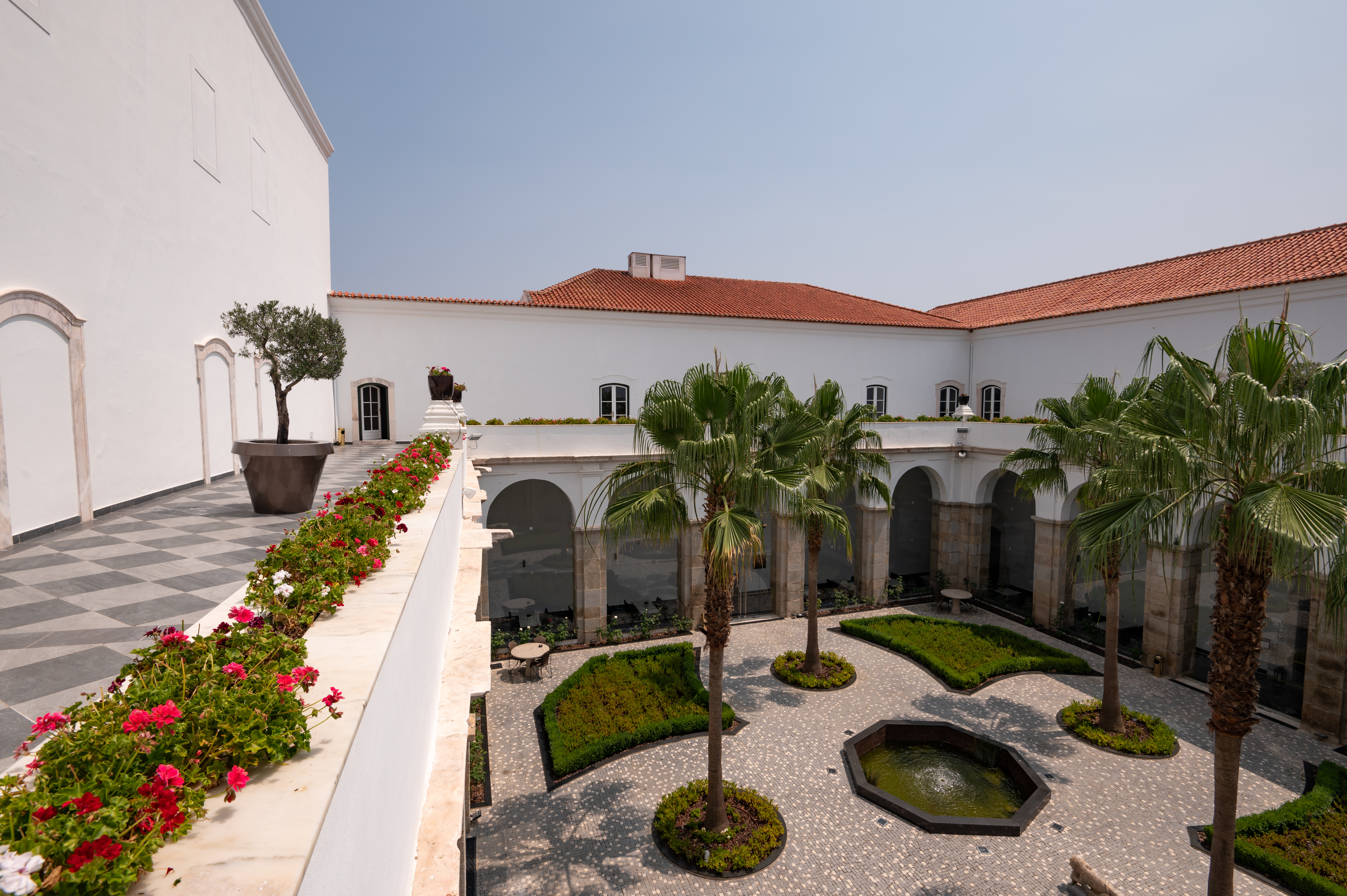 The hotel features 79 rooms and suites, all designed with sleek, minimalist furnishings and a palette that reflects the colours of the Alentejo region. Some rooms retain unique architectural features from the original convent, adding to the overall charm and authenticity of the experience.