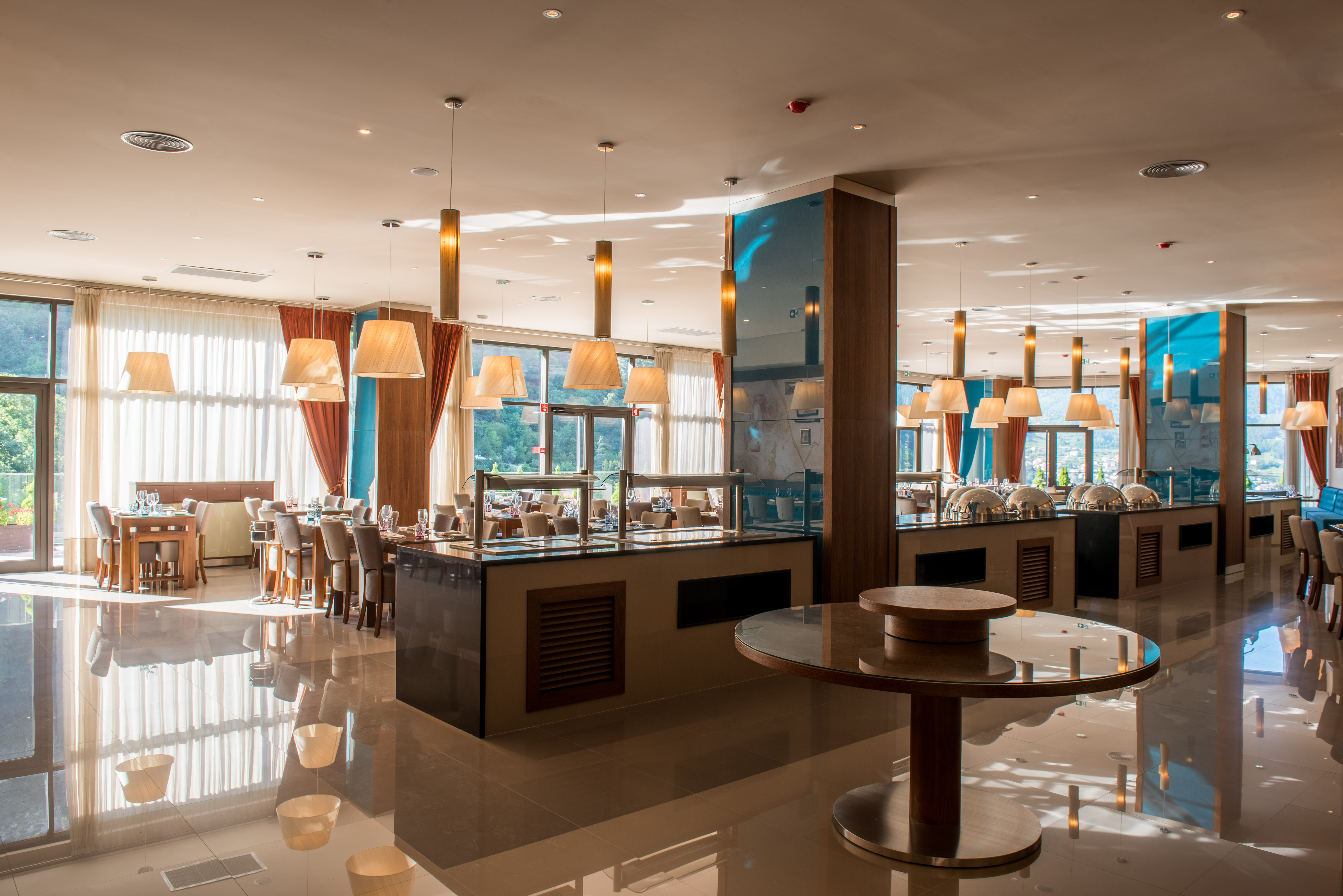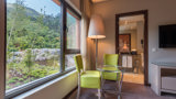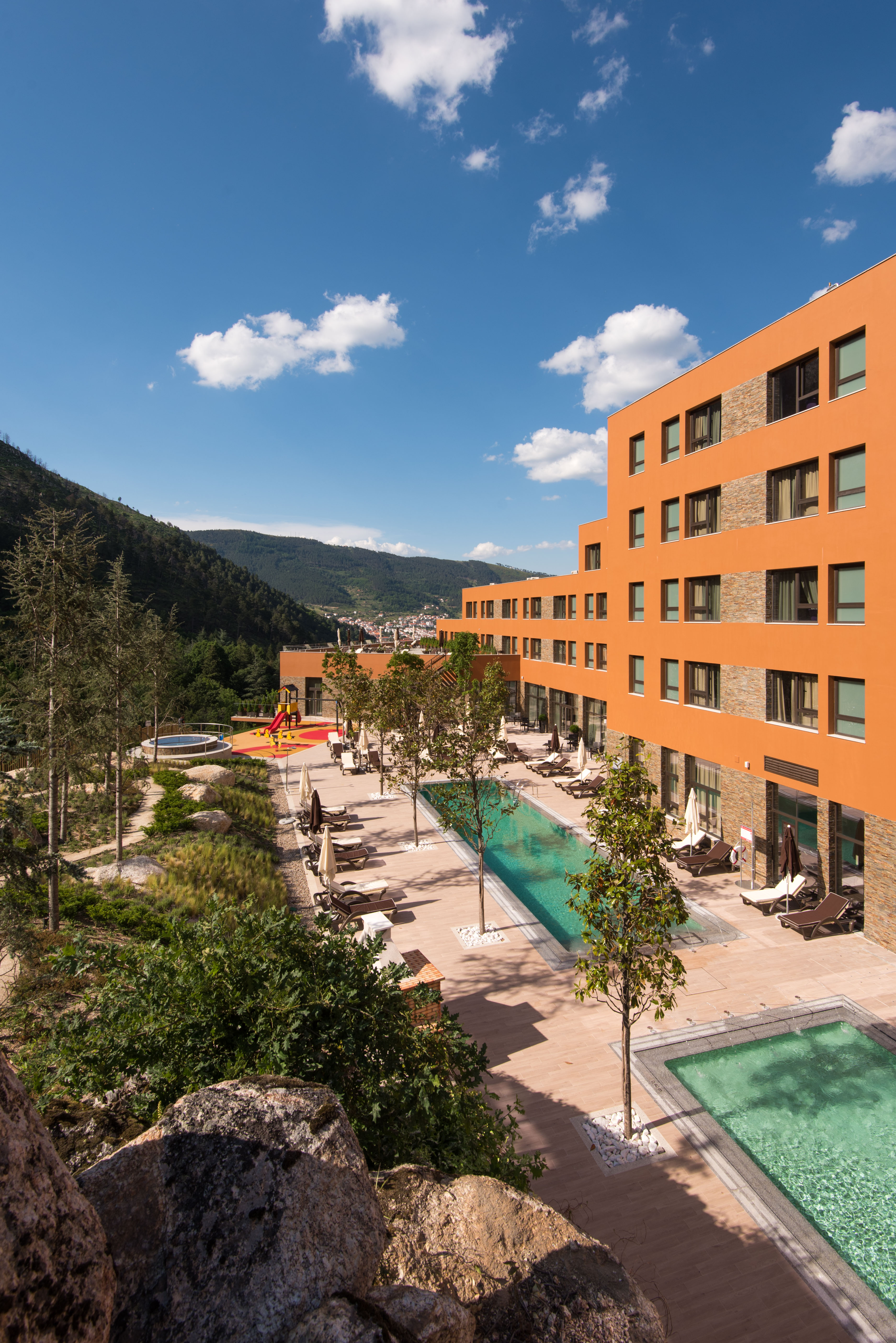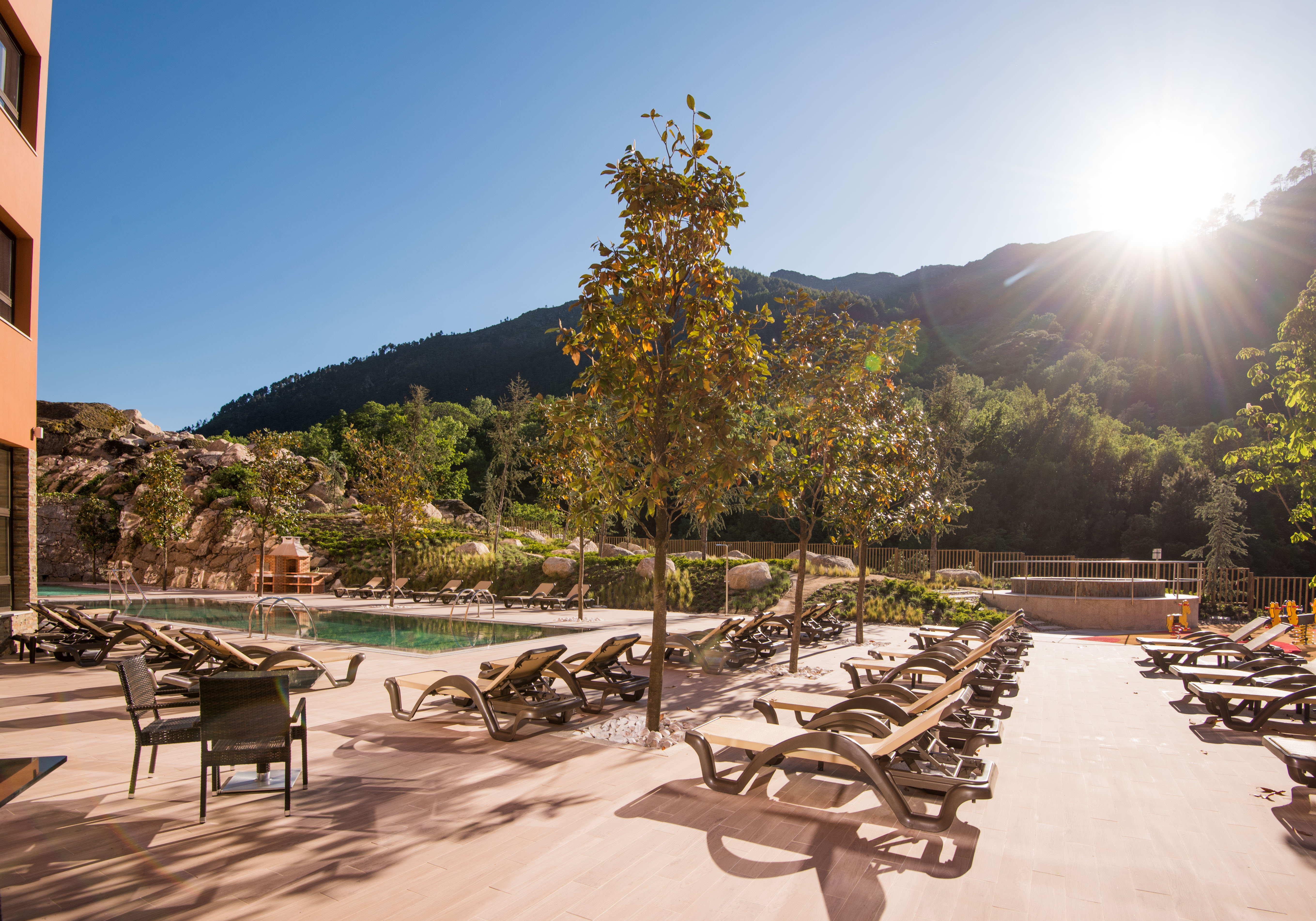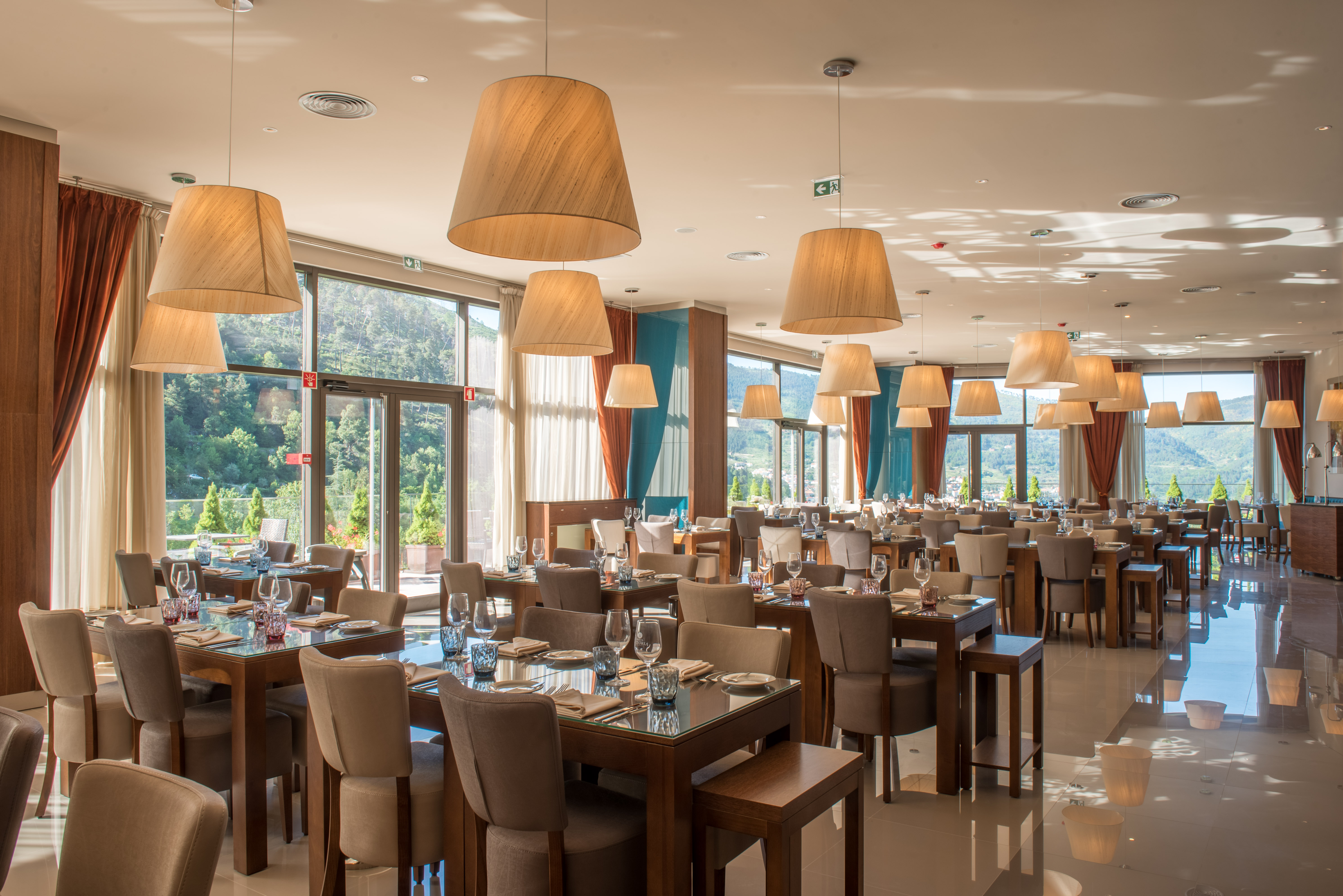 The Vila Galé Serra da Estrela is located in the heart of Serra Da Estrela, Portugal's highest mountain range. The architecture and interior are inspired by the region, incorporating local stone, wood and other natural materials to create a warm and welcoming atmosphere. The hotel's decor is minimalist, with a focus on earthy tones and large windows to allow guests to feel connected to the stunning views of the surrounding mountains and valleys.