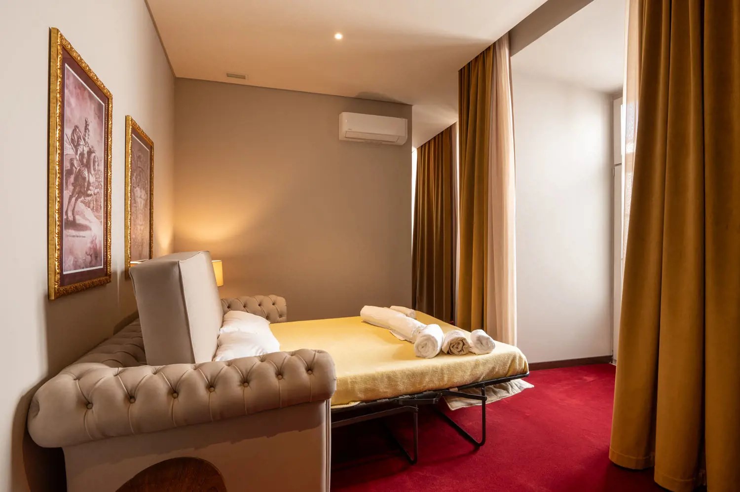 Triple room with either a bath or shower 3 single beds or 2 single beds and a sofa bed . Area: 15m² Maximum Capacity: 3