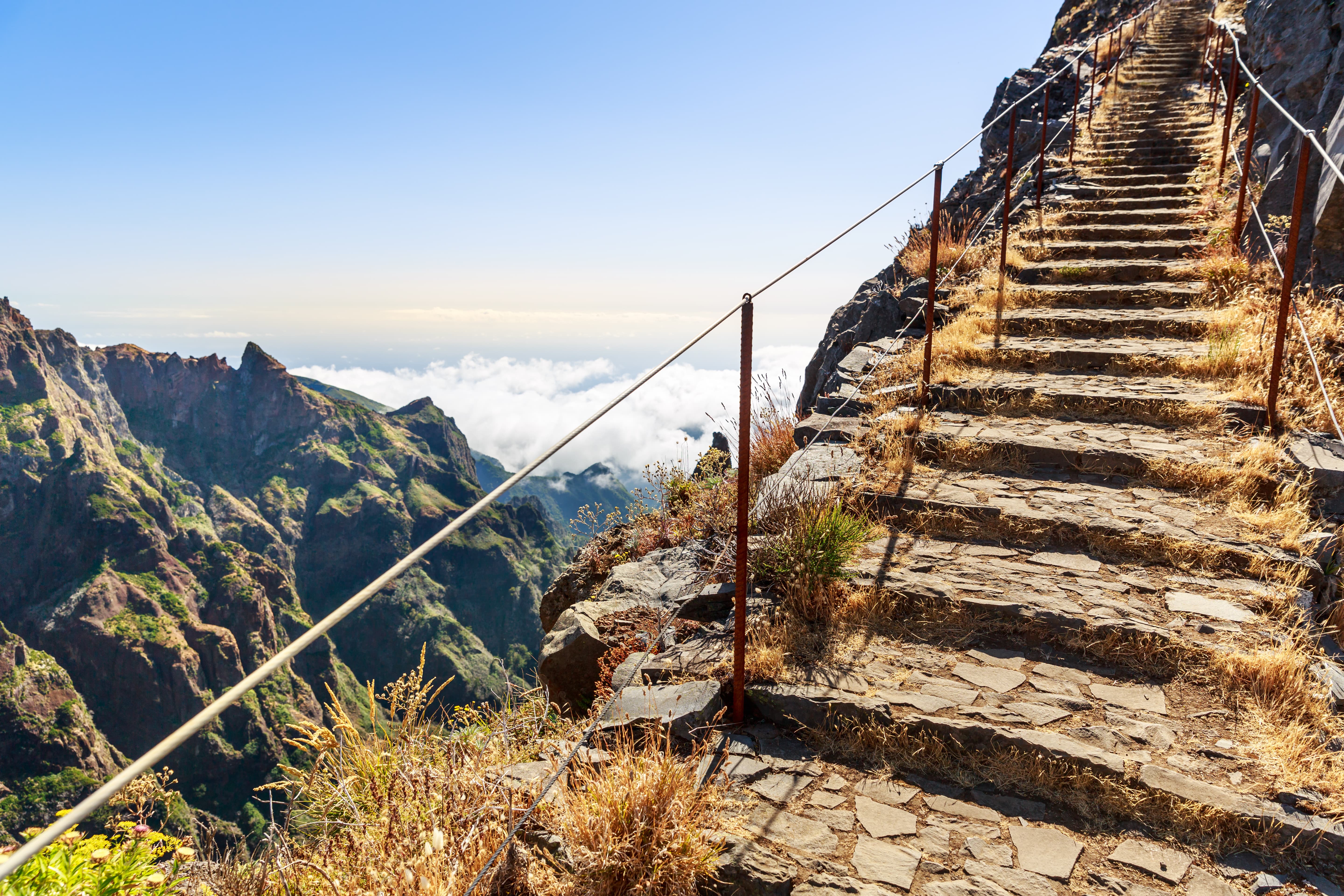 Madeira is often referred to as the ‘Pearl of the Atlantic’, a subtropical island oasis blessed with mild weather all year-round. Early settlers exploited the rich and fertile volcanic soil to grow sugar cane and built the levadas; an 1,875-mile-long network of irrigation channels which run alongside the steep terraced fields of the rainy northwest to the drier southeast. These levadas are now used to mark numerous walking trails through the dense lush forests alongside waterfalls, lagoons and at times on the edge of vertiginous hills.
